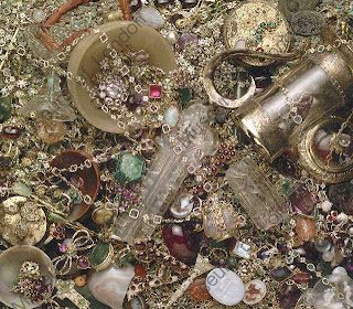 First, bits and pieces. Little broken bracelets and single earings. All precious and useful. I love this earing especially: